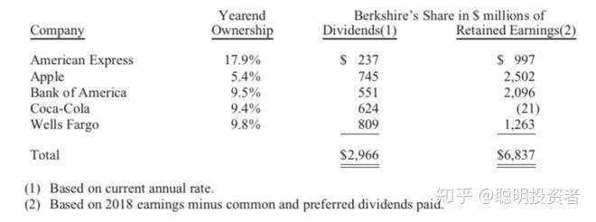 我们的被投资企业去年给了我们38亿美元的分红,这个数字将在2019年增加。但是,比股息更重要的是这些公司每年保留的巨额收益。作为一个指标,下面这些数字仅涵盖我们的前五大持仓股。
