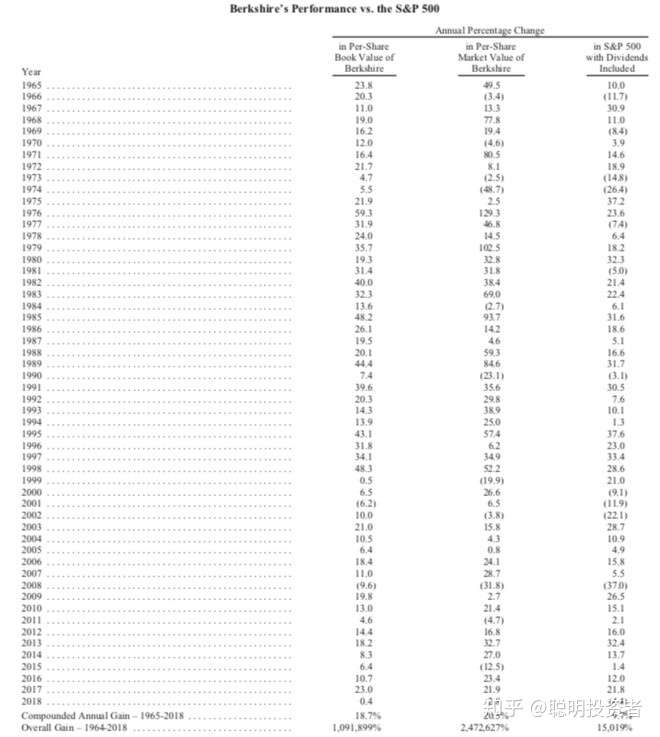 我们年报的老读者们将会发现我写这封信的顺序有些不大一样。过去三十年,第一段总是讲伯克希尔每股账面价值的增长率。现在是时候摒弃这项传统了。