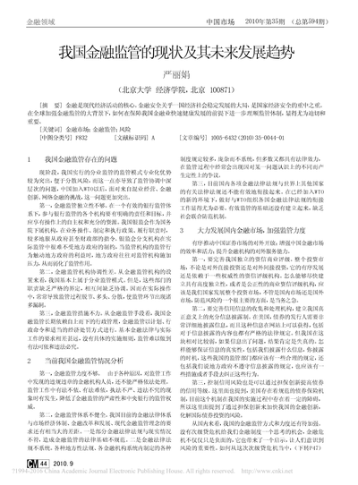我国金融监管的现状及其未来发展趋势_严丽娟