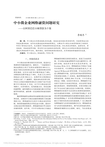 中小微企业网络融资问题研究_以阿里巴巴小额贷款为个案_李瑞冬